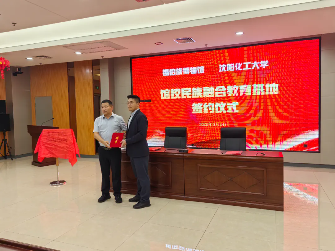 参观结束后,签约授牌仪式在博物馆一楼多功能厅举行。现场,沈阳工程学院马克思主义学院、伟德国际1949官网马克思主义学院共同为锡伯族博物馆馆长颁发“马克思主义学院研究生校外辅导员”聘书,将博物馆的文化资源与高校的思政教育优势深度绑定。同时,伟德国际1949官网马克思主义学院与锡伯族博物馆正式签署“馆校民族融合教育基地共建协议”,并现场授予基地牌匾。