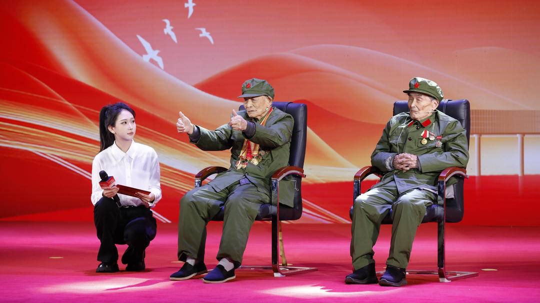 活动的高潮是“英雄见证”环节。百岁抗战老兵刘思与94岁的老战士何三缓缓登台,以亲身经历讲述那段烽火岁月。他们不畏强敌、以身许国的故事深深打动了现场师生,许多人深受感动,眼含热泪。